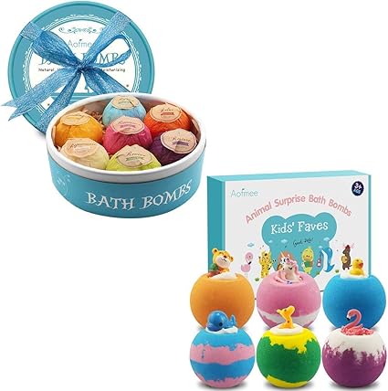 Amazon Com 2 Sets Of Aofmee Bath Bombs 7 Pcs Aofmee Relaxing And Soothing Bath Bombs Gift Set And 6 Pcs Aofmee Kids Bath Bombs Gift Set Health Personal Care