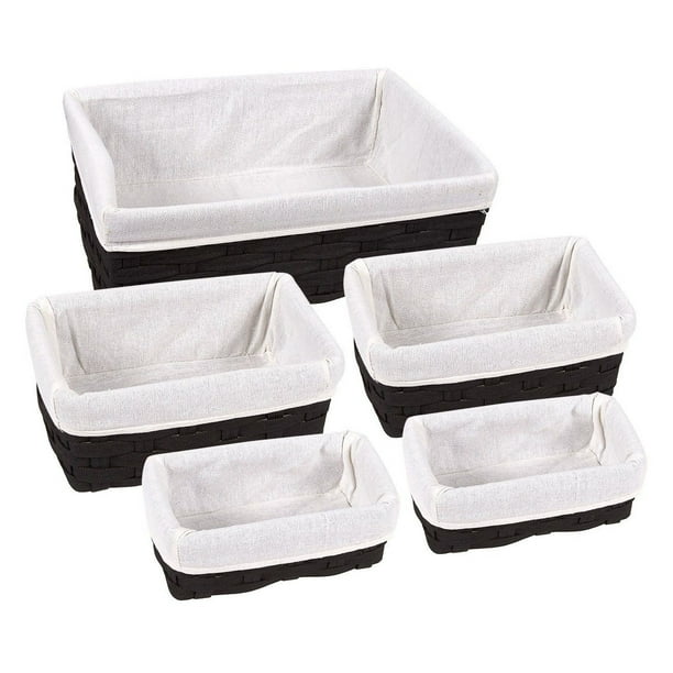 Nesting Basket 5 Piece Utility Storage Baskets Wicker Decorative Organizing Baskets Baskets Shelves For Kitchen Bathroom Bedroom 2 Small 2 Medium 1 Large Black Walmart Com Walmart Com