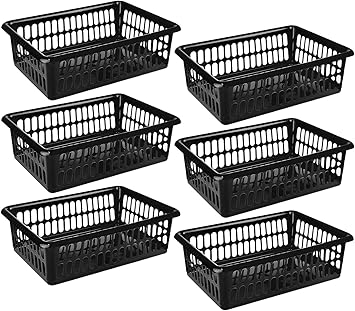Amazon Com 6 Pack Plastic Storage Organizing Baskets Food Pantry Closet Shelves Large Organizer Bins 15 X 10 Black Home Improvement