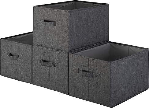 Black Plastic Home Storage Bins. 13 Inch Cube Storage System. Royexe Storage Bins - Set of 8 - Storage Cubes Foldable Fabric Cube Baskets Features Dual Handles.