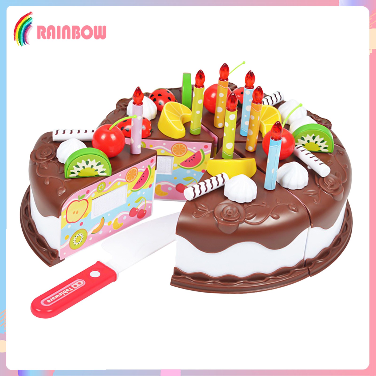 Rainbow 37pcs Pretend Birthday Cake For Kids Diy 99 Pcs Decorating Party Play Food Toy Shopee Indonesia