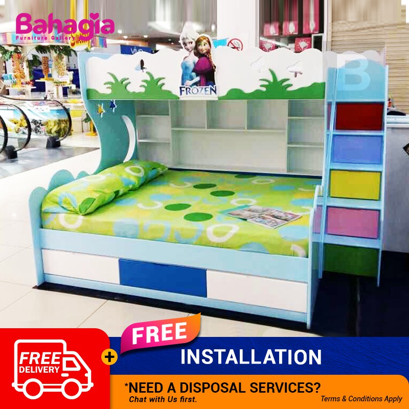 Bahagia Frozen Children Bunk Bed 1 Single Bed And 1 Queen Bed Children Bunk Bed With Ladder Drawer Shopee Malaysia