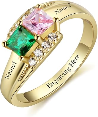 Amazon Com Jewelora Custom Name Bff Rings For Women Cheap Mothers Rings With 2 Simulated Birthstones Promise Rings For Her Clothing