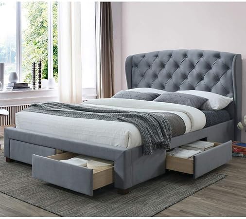 May Grey Fabric King Size 4 Drawer Bed Frame
