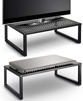 Amazon Com 2 Pack Simple Trending Monitor Stand Riser Metal Desk Organizer Stand With Anti Slip Suction Cup For Laptop Computer Imac Pc Printer Black Office Products