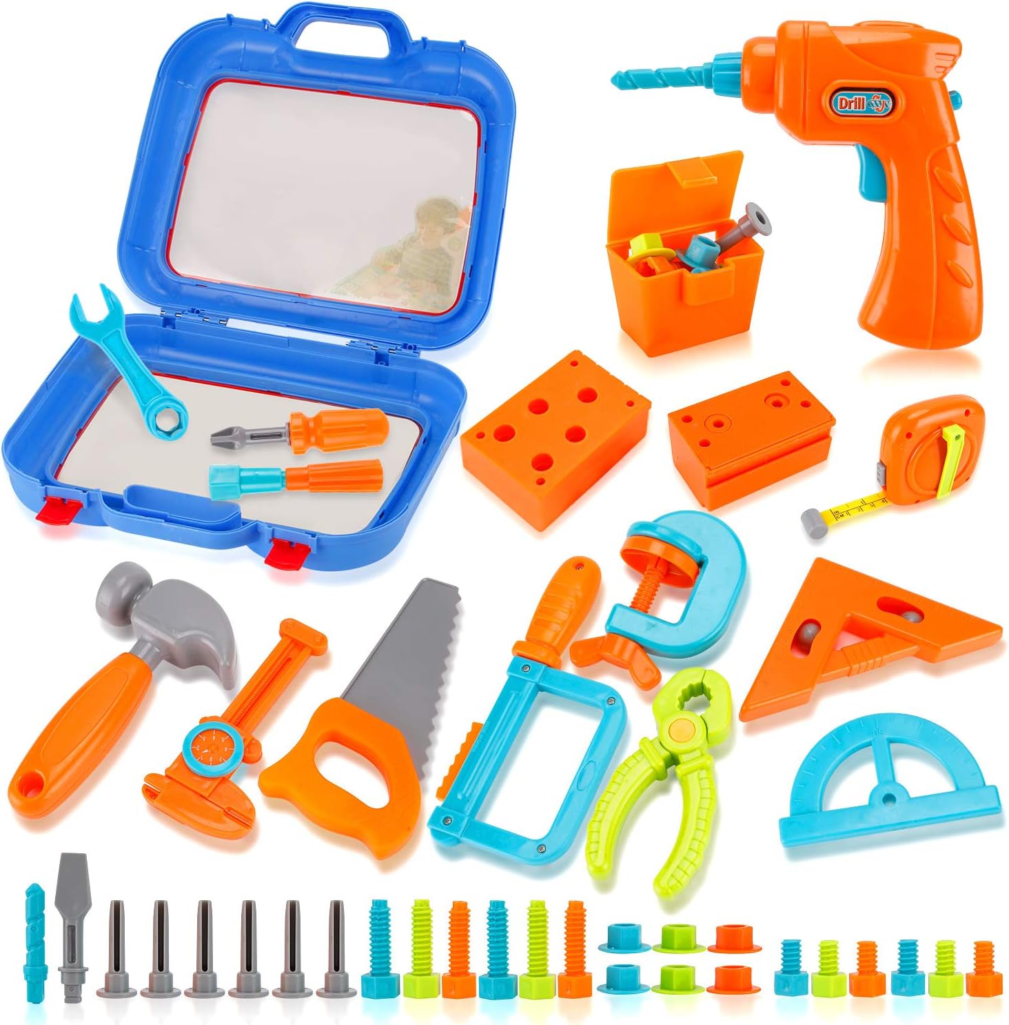 Amazon Com Liberty Imports Little Mechanic Power Tools Construction Toolbox Set For Kids Pretend Play Construction Tools Electronic Cordless Drill And Workshop Accessories 46 Pieces Toys Games