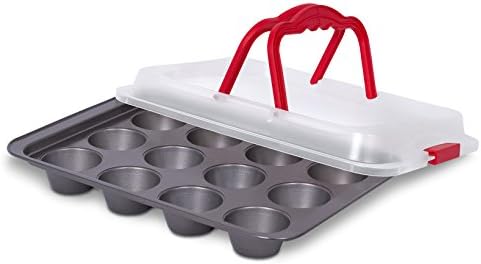 Amazon Com Internet S Best Cupcake Baking Pan With Lid And Handles 12 Cup Non Stick Muffin Tray With Cover Dishwasher Safe Red Grey Kitchen Dining