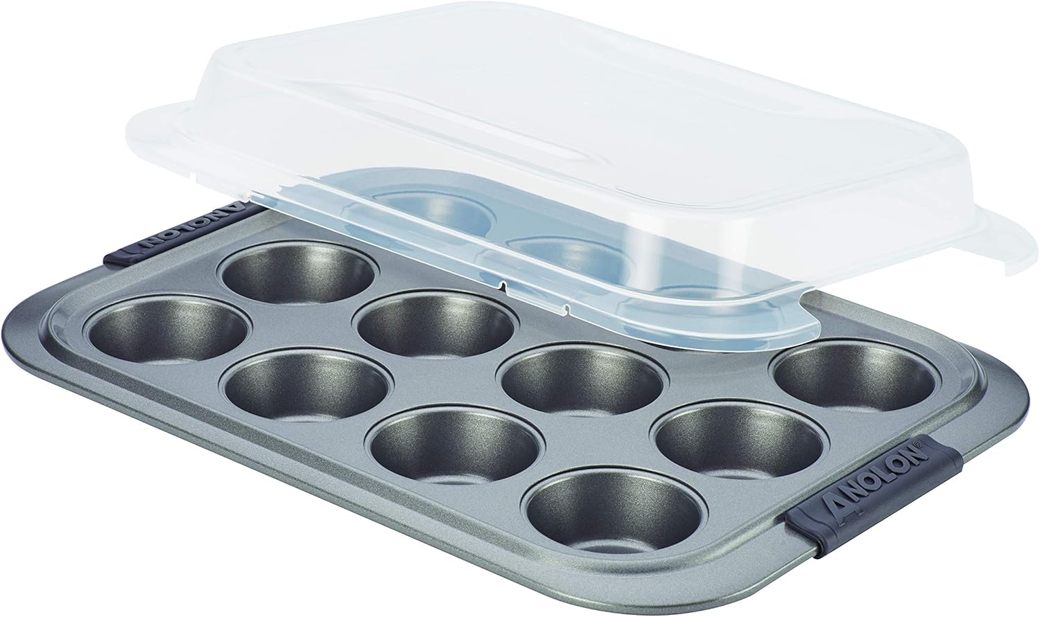 Amazon Com Anolon Advanced Nonstick 12 Cup Muffin Tin With Silicone Grips And Lid Nonstick 12 Cup Cupcake Tin With Silicone Grips And Lid 12 Cup Gray Kitchen Dining