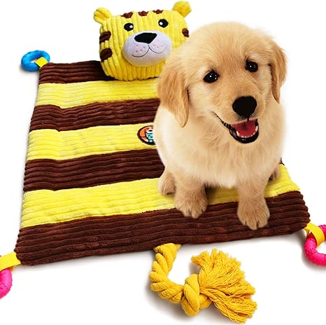 Amazon Com Awoof Puppy Bed With Puppy Teething Toys Pet Bed With Chew Squeak Rope Toys All In One Durable Dog Bed Mat For New Puppies Pet Supplies