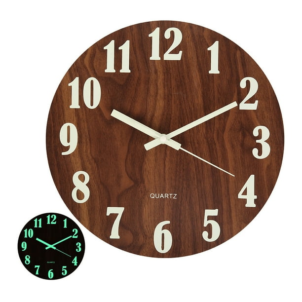 Updated quartz movements to ensure accurate time Quite Wall Clock -- Updated quartz movement super quiet non-ticking Quiet sweep second hand no ticking to ensure a goodsleeping or working. The Luminescent Moon Clock - This is the wall clock that glows in the night with the face of the full moon. Plumeet Luminous Wall Clocks - 12 Non-Ticking Silent Wooden Clock with Night Light - Large Decorative Wall Clock for Kitchen Office BedroomBattery Operated 3D Number Brown Face.