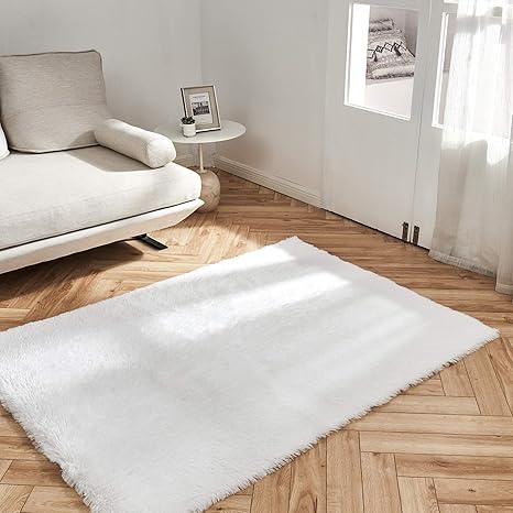 Amazon Com Ohgeni Machine Washable 4x5 3 Feet Area Rug For Bedroom Living Room Dorm Room Fluffy Soft Faux Fur Rugs Non Slip Floor Carpet Kids Nursery Modern Home Decor White Kitchen Dining