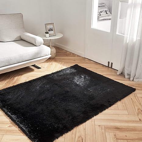 Amazon Com Ohgeni Machine Washable 4x5 3 Feet Area Rug For Bedroom Living Room Dorm Room Fluffy Soft Faux Fur Rugs Non Slip Floor Carpet Kids Nursery Modern Home Decor Black Kitchen Dining