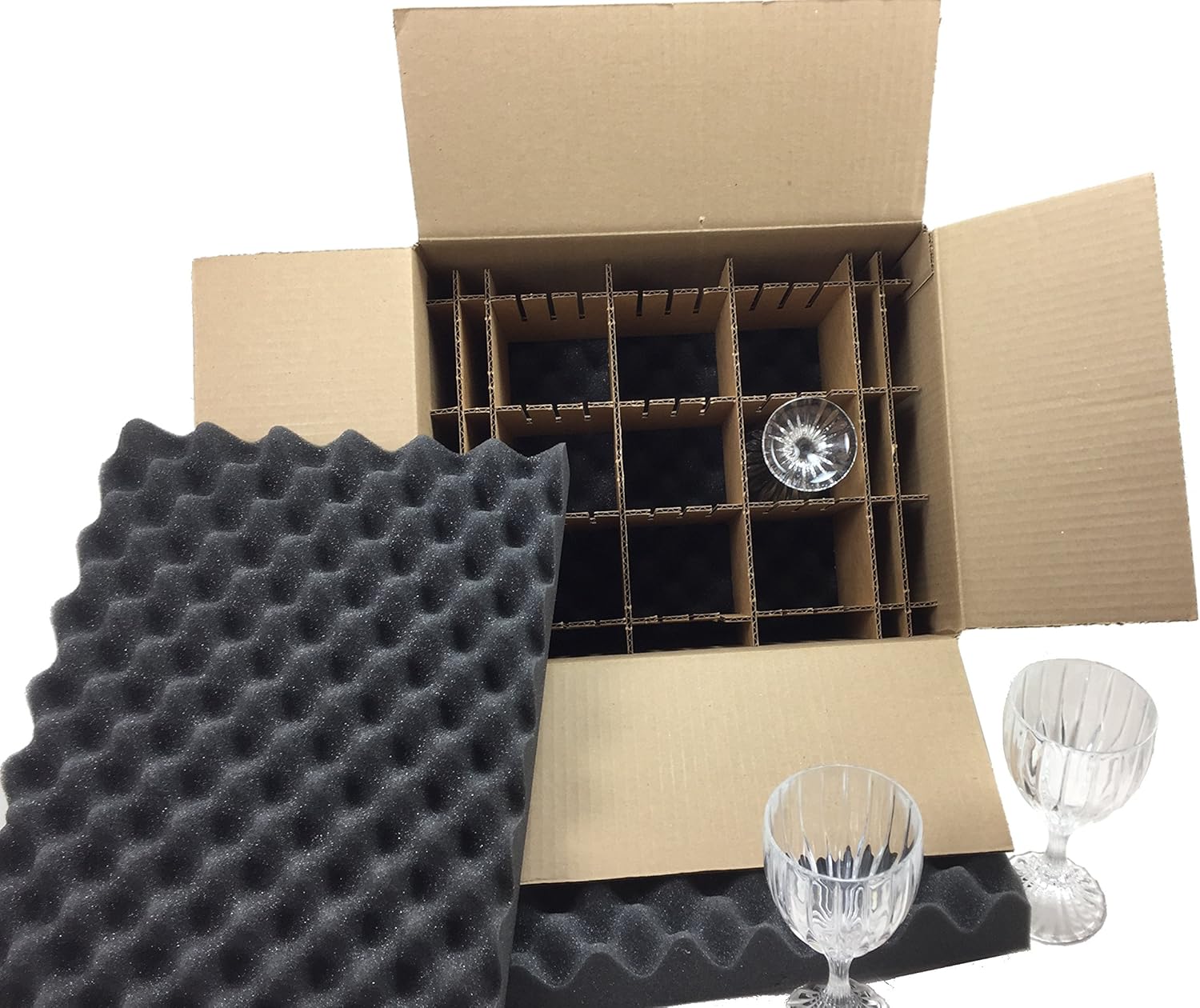 Amazon Com Wine Glass Shipping Moving Box Fits 9 Wine Glasses Up To 7 Tall And 3 25 Diameter Protective Travel Transport Case Foam Shock Protection Sturdy Cardboard Shell 2 Pack Office Products