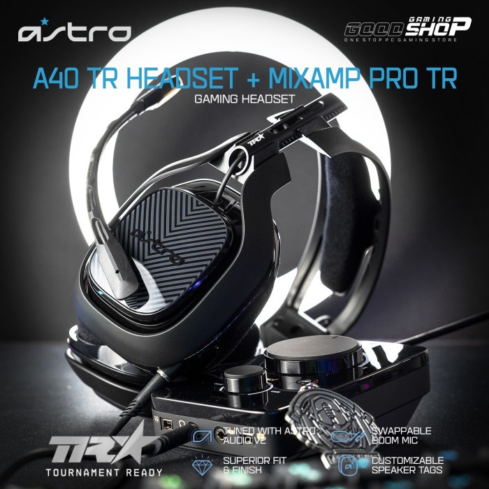 The ASTRO A40 TR Headset MixAmp Pro TR is the premier audio solution for esports athletes content creators and streamers. The ASTRO A40 TR Headset MixAmp Pro TR is the premier audio solution for esports athletes content creators and streamers. Able to adapt to any environment the A40 TR arrives as an open-back headset featuring a swappable boom mic and customizable Speaker Tags.