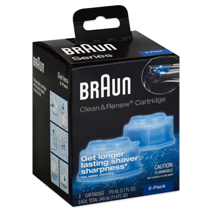 The Clean and Renew Cartridge is displayed in Figure 13 below. Features and Benefits Alcohol-based cleaning solution removes 999 of germs providing optimal hygiene for your shaver Lemon-fresh formula releases a refreshing scent for a fresher shaving experience High energy lubricants maintain your shavers best performance Replace the refill cartridge every 3 months to experience a shaver like new every day The Braun Clean. The Braun Clean.