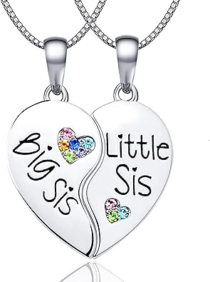Amazon Com Kingsin Sister Necklace For 2 Big Sister Little Sister Bff Pendant Necklaces Matching Heart Necklace Jewelry Gifts For Girls Women Clothing
