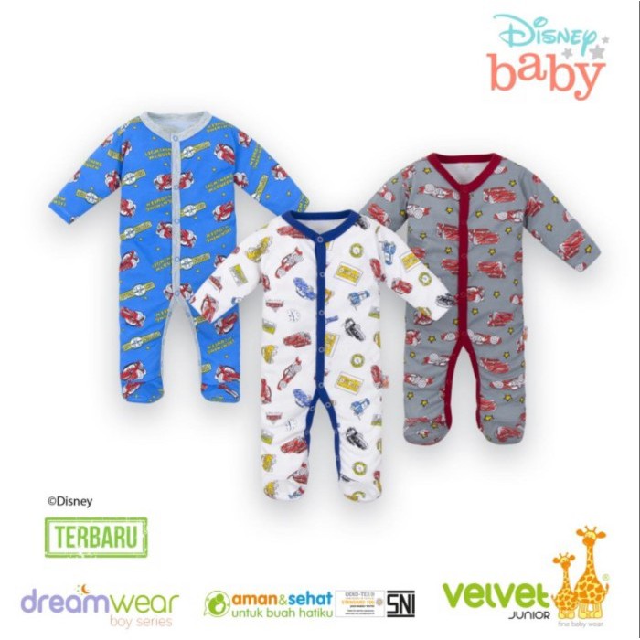 Velvet Dreamwear Disney Baby Car Baby Boy Jumper Oblong Kancing Depan Tutup Kaki Isi3 Pcs Shopee Indonesia