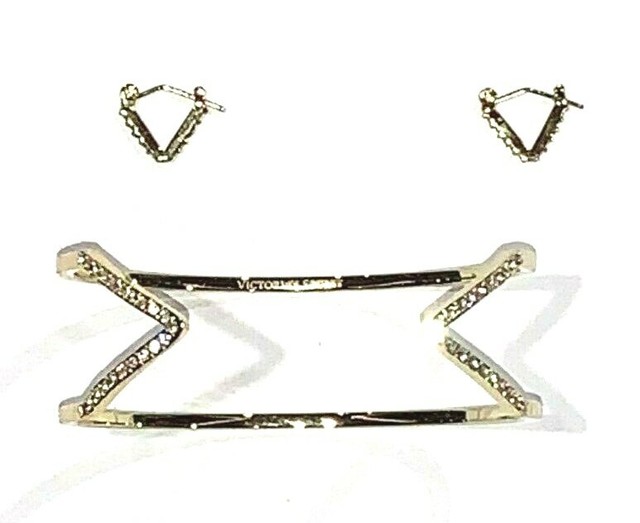 Victoria S Secret Earring Bracelet Set Gold Tone Stones 23001231 For Sale Online Ebay