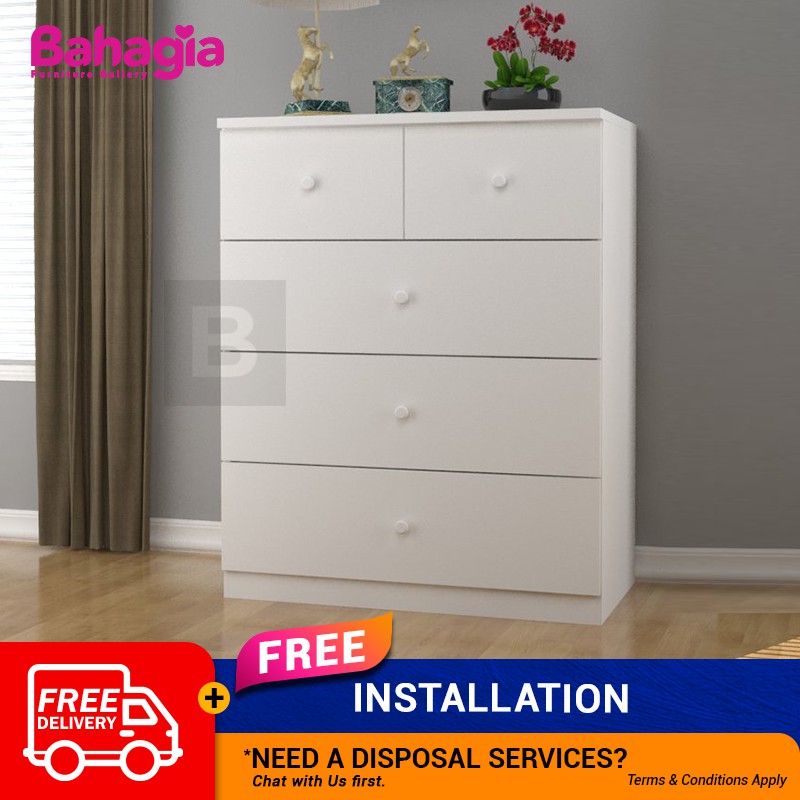 Bahagia Arce Chest Drawer White With 5 Storage Almari Baju Clothes Cabinet Clothes Organization Storage Shopee Malaysia