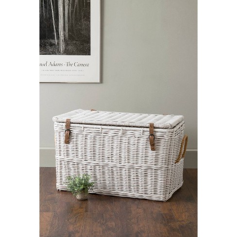 Household Essentials Arctic White Large Wicker Storage Chest Ml 7165 The Home Depot