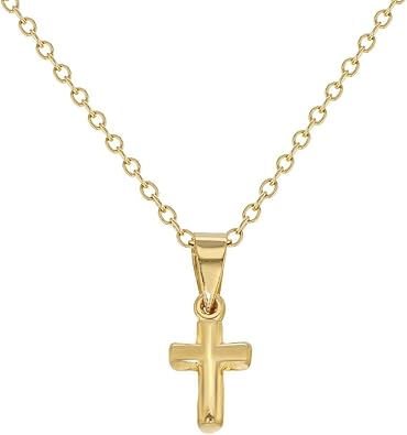 Amazon Com In Season Jewelry 14k Gold Plated Religious Small Cross Pendant Necklace Babies Kids 16 Jewelry