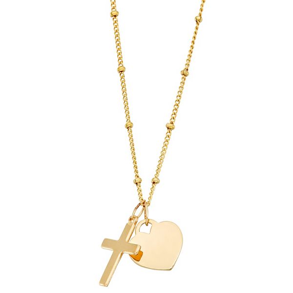 Kids Charming Girl 14k Gold Heart Cross Pendant Necklace